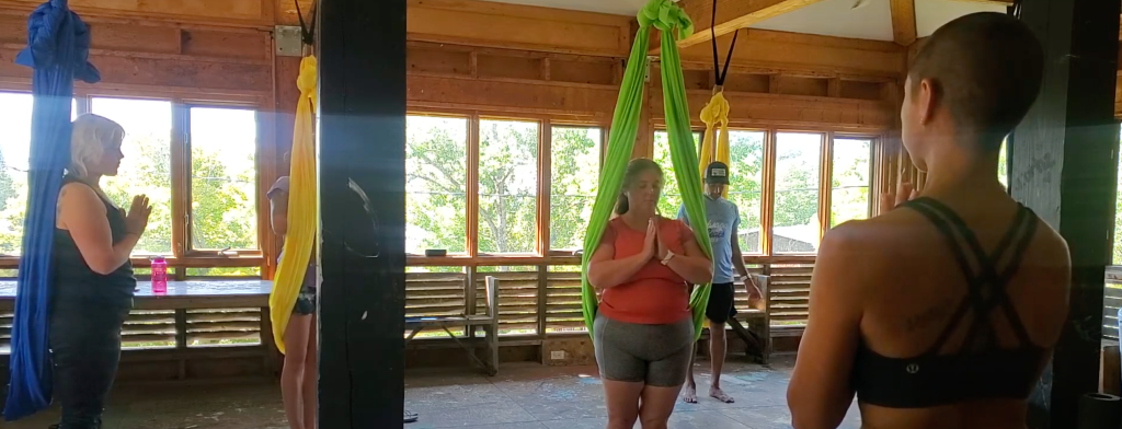In 2022, Kaye had the privilege of performing during the closing ceremony at Black Rock City’s Burning Man for the first time. Her background in dance, tour management, and yoga helped them navigate one of the greatest experiences of her life. During this mini-tour, which included teaching at Tmrw.Tday in Algonquin, performing at Burning Man in the desert, and teaching at Camp Yoga, Kaye utilized her best skills: as a producer, she honed her organizational abilities; as a performer, she expanded her physical connection with a new element (fire); and as a practitioner, she applied the 8 Limbs of Yoga to move through the three week experience with balance and ease.